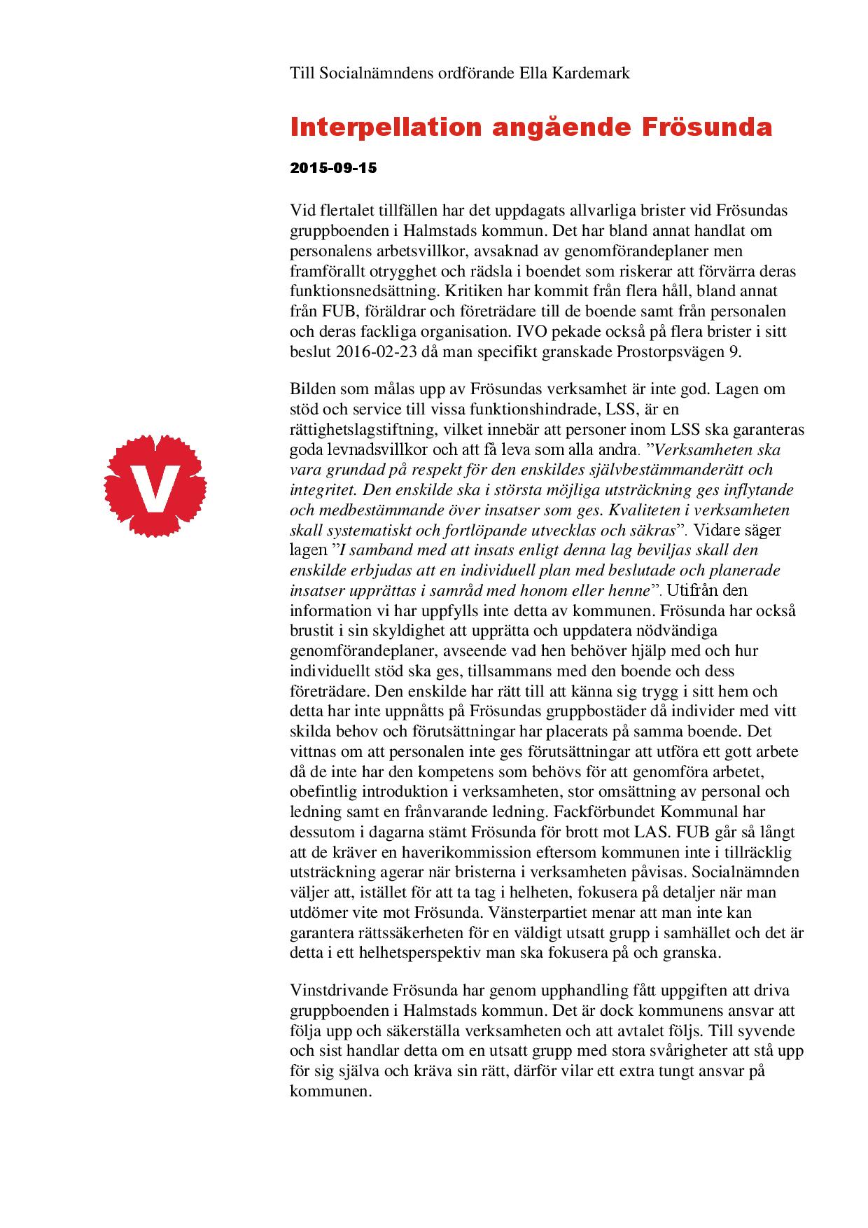 kommunen. Det är något som Vänsterpartiet kan skriva under på. Tillsammans kan vi göra skillnad.